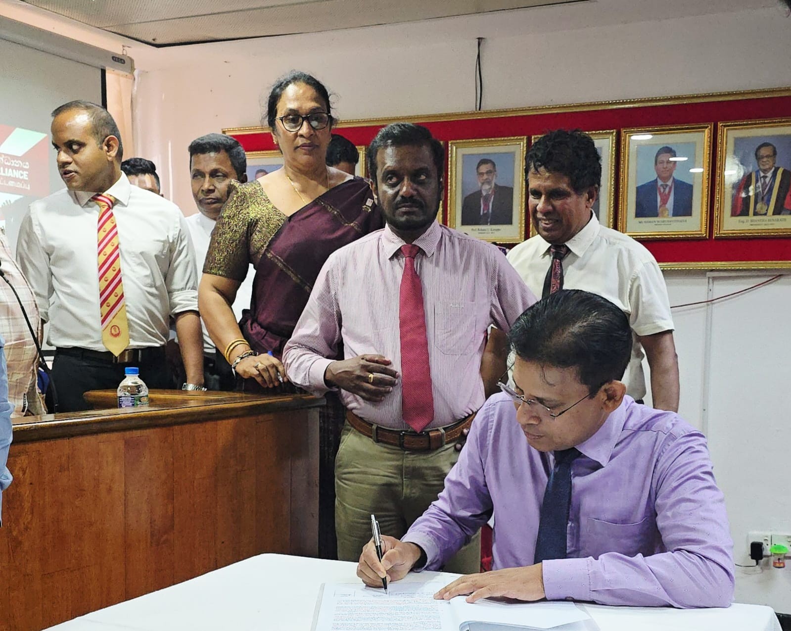 රෝගීන්ගේ අයිතිවාසිකම්, සෞඛ්‍ය කාර්ය මණ්ඩලයේ ආරක්ෂාව සහ නිදහස් සෞඛ්‍ය සේවාවේ අනාගතය බරපතළ අභියෝගයකට ලක්ව ඇති වර්තමාන පසුබිම තුළ, සෞඛ්‍ය සේවාවේ සියලු වෘත්තීය සමිති ඒකාබද්ධ කරමින් “සෞඛ්‍ය සේවා වෘත්තීය සමඟති සන්ධානය” නව සමූහ ව්‍යුහයක් ලෙස අද කොළඹ වෘත්තීයවේදීන්ගේ සංගම් කාර්යාලයේදී අවබෝධතා ගිවිසුමකට අත්සන් තැබීය.