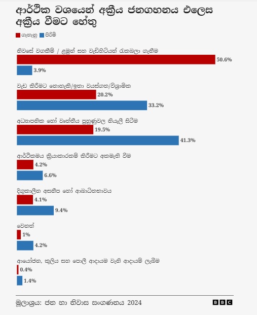 ආර්ථික වශයෙන් අක්රීය පිරිමි ජනගහනයෙන් වැඩි පිරිසක් තම අනාගතය, එසේත් නැතිනම් අධ්යාපනය සඳහා ආයෝජනය කිරීමට ශ්රම බළකායෙන් ඉවත්ව සිටිති.