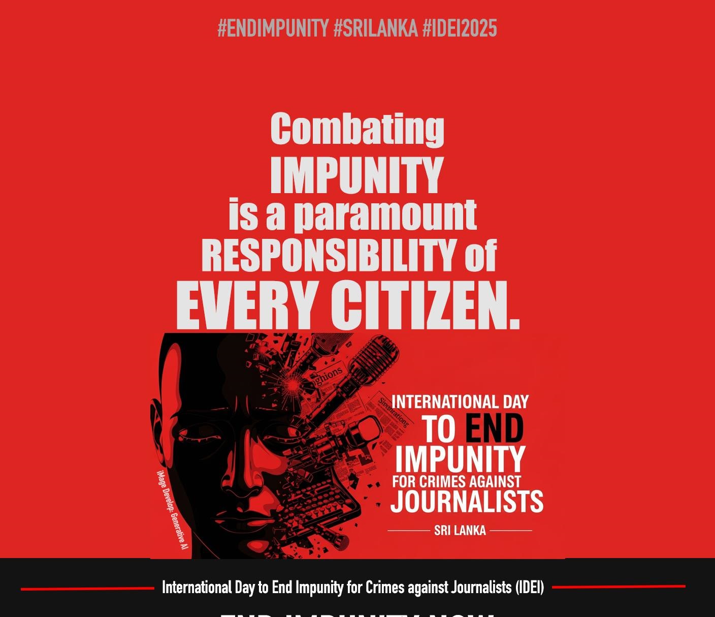 තත්ත්වය එසේ තිබියදී, දණ්ඩමුක්තියට එරෙහිව සටන් කිරීම යනු පුරවැසියන්ගේ ප්රමුඛ වගකීම පමණක් නොව, ප්රකාශනයේ නිදහස ඇතුළු ප්රජාතන්ත්රවාදී වටිනාකම් සහිත සමාජයක් ගොඩනඟා ගැනීමට අත්යවශ්ය පියවරක්ද වන බව මෙම සංඛේතාත්මක වැදගත් දිනයේදී සටහන් කළ යුතුමය. මන්ද, දණ්ඩමුක්තිය යනු නීතියේ ආධිපත්යයට බරපතල තර්ජනයකි; එය බලය අයුතු ලෙස භාවිතා කරන්නන්ට ආරක්ෂාවක් සපයමින්, පුරවැසියාගේ අයිතිවාසිකම් කෙලෙසා දමන බැවිනි. මෙම සටන පුද්ගලික වගකීමක් ලෙස සීමා විය යුතු නොවේ. එය රාජ්ය ආයතන, මාධ්ය, සිවිල් සංවිධාන සහ අධ්යාපන ආයතන ඇතුළු සමස්ත සමාජයේම ඒකාබද්ධ ක්රියාමාර්ගයක් විය යුතුය. එසේම, ප්රකාශනයේ නිදහස ආරක්ෂා කිරීම දණ්ඩමුක්තියට එරෙහි සටනේ ප්රධාන අංගයකි. එය එසේ වන්නේ, නිදහස් මාධ්යයකින් තොරව දූෂණ හෙළිදරව් කිරීම, බලය අයුතු ලෙස භාවිත කිරීම් හෙළි කිරීම සහ මානව හිමිකම් පදනම් වූ ජනමතයක් ගොඩනැඟීම අසීරු වේ. එබැවින්, මාධ්යවේදීන්ගේ ආරක්ෂාව, තොරතුරු දැනගැනීමේ අයිතිය සහ අන්තර්ජාල නිදහස ඇතුලු ඩිජිටල් අයිතිවාසිකම් තහවුරු කිරීම මෙම සටනේ අත්යවශ්ය අංග වේ. අවසාන වශයෙන්, දණ්ඩමුක්තියට එරෙහි සටන යනු ප්රජාතන්ත්රවාදයේ පැවැත්මට තීරණාත්මක තත්ත්වයකි. එය නිදහස, යුක්තිය සහ නීතියේ ආධිපත්යය මත පදනම් වූ සමාජයක් ගොඩනැඟීමේ පදනම වේ. එබැවින්, සෑම පුරවැසියෙකුම, සෑම ආයතනයකම, දණ්ඩමුක්තියට එරෙහිව එක්ව සටන් කිරීම යනු ඔවුන්ගේ ප්රජාතන්ත්රවාදී යුතුකමකි.
