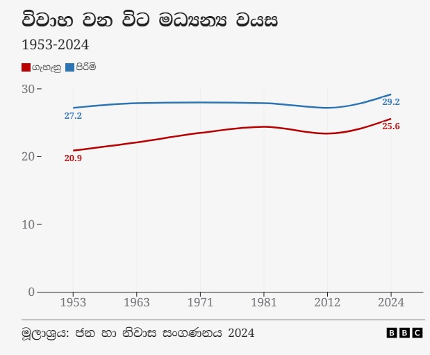 කාන්තාවන් විවාහ වන සාමාන්ය වයස කාලයත් සමග බොහෝ සෙයින් වැඩි වී ඇති බව වාර්තාව පෙන්වා දෙයි.