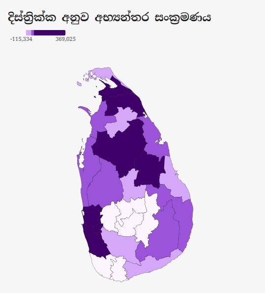 ශ්රී ලංකාවේ ජනගහනයෙන් 13%ක් පමණ ජනතාව දැනට ජීවත් වන්නේ ඔවුන් උපන් ස්ථානයට වඩා වෙනස් දිස්ත්රික්කයක ය.