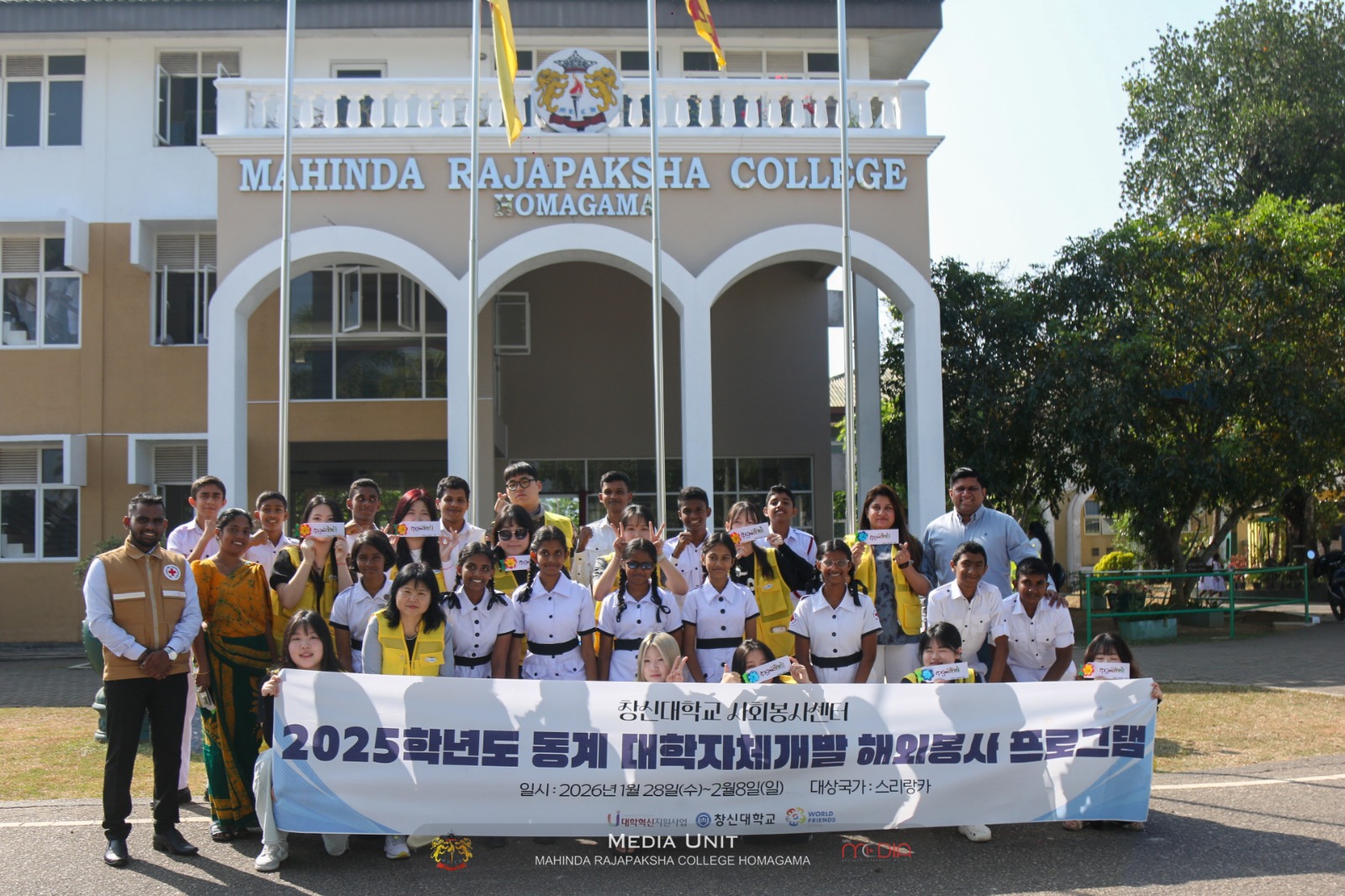 ශ්රී ලංකා රතු කුරුස සමාජයේ ආරාධනයෙන් දකුණු කොරියාවේ Changshin විශ්ව විද්යාලයේ මහාචාර්ය LEE MYEONGAE මහත්මිය හා මහාචාර්ය රජිත කෞශල්ය මහතා ඇතුළු එම විශ්වවිද්යාලීය සිසු සිසුවියන් දාහතර (14) දෙනෙකු මෙරටට පැමිණ පසුගිය දිනවල ශ්රී ලංකා රතු කුරුස සමාජය හා ඒකාබද්ධව විවිධ ස්වෙච්ඡා ව්යාපෘතිවල නිරත වූහ.