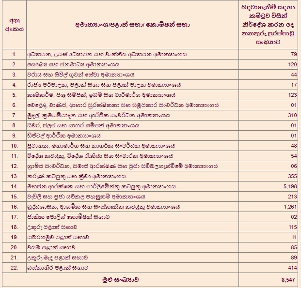 ඒ අනුව පහත සඳහන් පරිදි රාජ්ය සේවයට බඳවා ගැනීමට නියමිතය.